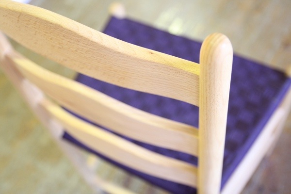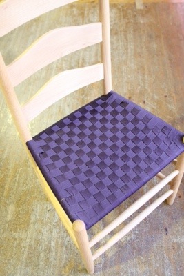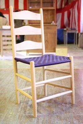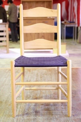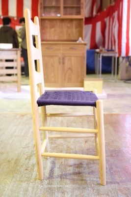 ブナの木を使って作ったシェーカーチェア。繊細な作りとなっており、座面はテープで編んでいます。